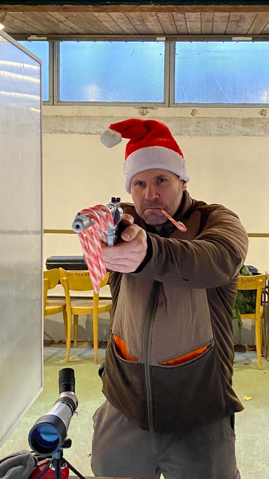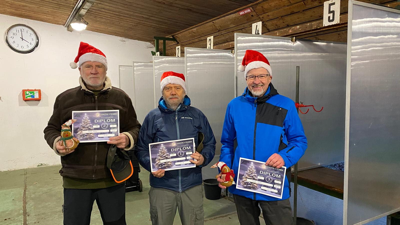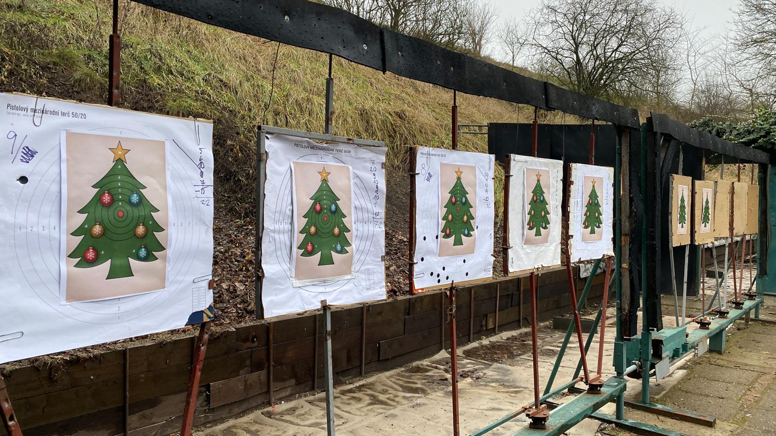 Členové našeho klubu se rozhodli zpestřit si pravidelný trénink a proto si 6.12.2025 uspořádali předvánoční soutěž v netradiční disciplíně, kterou byla tentokrát střelba na vánoční stromek. Nutno hned zkraje podotknout, že jako terče nesloužily ozdobené jehličnany, ale papírové terče s natisknutým stromkem, na kterém byly zóny s různým bodovým ohodnocením, včetně záporných. Pravidla byla vcelku jednoduchá. Střílej čím chceš, čím můžeš a jak chceš a snaž se udělat 15 dírek v co nejlépe hodnocených oblastech terče. Vysoké sportovní nasazení zúčastněných bylo podpořeno množstvím doneseného občerstvení v podobě chlebíčků, cukroví a jiných dobrot.